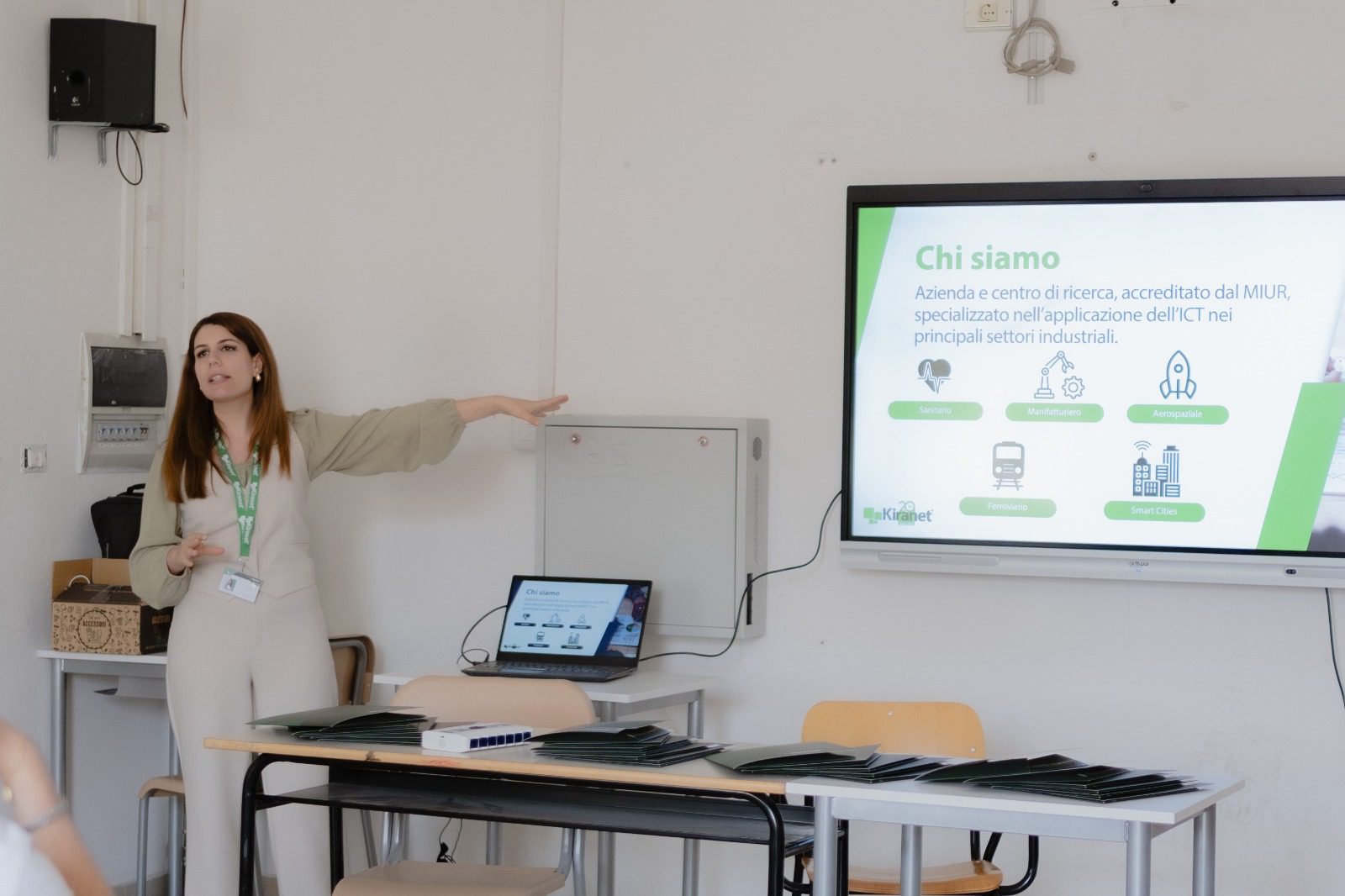 Kiranet, rappresentata dal direttore generale, l’ingegnere Raffaele Chianese, e dai dipendenti di diverse aree aziendali ha incontrato gli studenti di quarto e quinto anno di informatica, pronti a decidere il proprio futuro nelle prossime settimane, dopo la maturità. L’azienda di Aversa, che dal 20025 si impegna a promuovere l’innovazione nel settore sanitario, manifatturiero, aerospaziale, ferroviario e delle smart-cities, è molto attenta allo scouting e al recruiting. I punti di forza di Kiranet sono le persone e il network di relazioni. Grazie a un prezioso know how nell’ambito informatico, nelle telecomunicazioni e nella progettazione elettronica e meccanica, l’azienda possiede tutte le competenze necessarie alla traduzione e realizzazione di un’idea innovativa: dall’attività di ricerca e sviluppo, progettazione, costruzione di un prototipo per arrivare poi al prodotto finale.