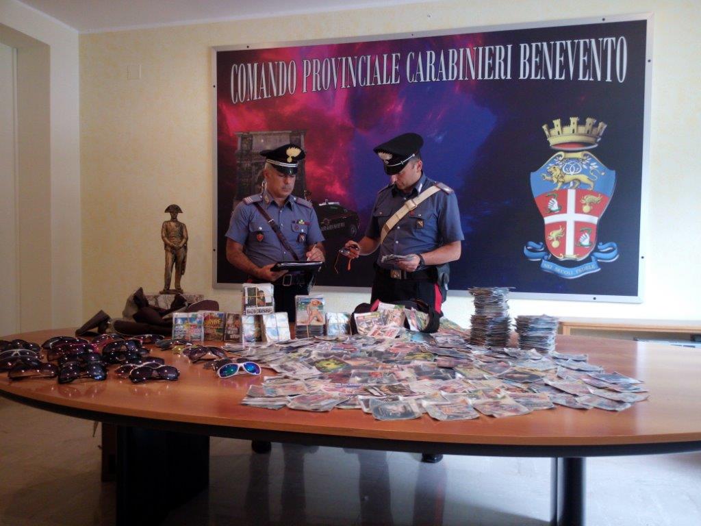 I Carabinieri del Nucleo Operativo e Radiomobile, con il supporto dei colleghi della locale Stazione, nell’ambito dei servizi tesi al contrasto dell’abusivismo commerciale e della contraffazione disposti dal Comando Provinciale Carabinieri di Benevento, hanno denunciato in stato di libertà per ricettazione e vendita abusiva di materiale contraffatto, due cittadini senegalesi di 57 e 23 anni , entrambi domiciliati in Piazza Garibaldi di Napoli.