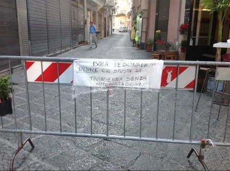 “Isola pedonale, incivile chi sposta la transenna senza autorizzazione”. E’ questo l’eloquente messaggio che campeggiava questo pomeriggio su una transenna in via del Seggio, dove era in fase di allestimento una manifestazione “Seggio in fiore” che aveva lo scopo di aprire la zona anche a quanti, non più tanto giovani, non sono interessati alla movida in senso stretto. Il messaggio è rivolto a quanti dovrebbero sorvegliare sulla zona e che invece oggi non erano presenti. Forse, non essendo ancora orario di chiusura e non essendoci quindi locali da multare la tranquillità e la sicurezza dei pedoni in via del Seggio non rappresentava una priorità per l’amministrazione comunale guidata dal sindaco Sagliocco.