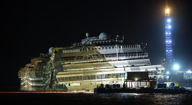Poco piu’ di un’ora per andare a fondo, meno di 24 ore per riemergere grazie all’ingegno di 500 persone arrivate da tutto il mondo per realizzare qualcosa di mai tentato prima: la Costa Concordia riemerge dalle acque del Giglio, 610 giorni dopo il naufragio. “La rotazione della Costa Concordia e’ conclusa. La nave e’ ora appoggiata sulla piattaforma. Abbiamo segnato un punto decisivo per l’allontanamento della nave dal Giglio”. Ad annunciarlo e’Franco Gabrielli, capo della Protezione Civile.