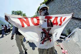 NAPOLI – Protesta del movimento No Tav sul lungomare di Napoli. Un piccolo gruppo di manifestanti ha protestato in occasione della presentazione del nuovo Frecciarossa 1000, oggi a Napoli, alla presenza dell’amministratore delegato di Ferrovie, Moretti.