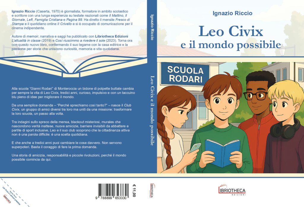 È disponibile “Leo Civix e il mondo possibile”, il nuovo libro di narrativa del giornalista, formatore in ambito scolastico e scrittore Ignazio Riccio pubblicato da Libriotheca Edizioni, pensato per le scuole secondarie di primo grado e per tutti quei ragazzi che vogliono capire il mondo che li circonda e immaginare un futuro migliore. Ambientato tra i banchi di una scuola media, il breve romanzo racconta la storia di Leo e dei suoi amici, fondatori del “Club Civix”, un gruppo di studenti curiosi e intraprendenti che, partendo da piccoli episodi della vita quotidiana, decidono di impegnarsi in prima persona per migliorare la propria comunità scolastica. Dallo spreco alimentare in mensa all’uso consapevole dell’energia, dal rispetto delle regole all’inclusione, ogni avventura diventa un’occasione concreta di crescita e consapevolezza.