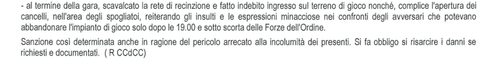 ECCO LA DECISIONE DEL GIUDICE SPORTIVO