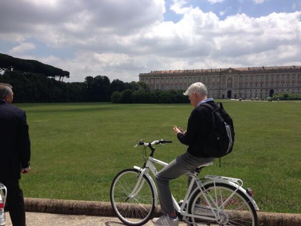 CASERTA – Visita privata oggi per il ministro per i Beni e le attività culturali e il Turismo Massimo Bray alla Reggia di Caserta: il ministro ha visitato il palazzo e i suoi giardini con una bicicletta noleggiata alla stazione della città e ha potuto così verificare – spiega una nota del Mibac – le condizioni del sito Patrimonio dell’Umanità Unesco dal 1997. Bray lo ha puntualmente documentato su Twitter: “Stamattina ho fatto una visita privata alla Reggia di Caserta, esplorando i suoi giardini e percorrendone le gallerie”, ha scritto poco fa sul social network, accompagnando il messaggio con una foto che lo ritrae sulla bici, in sneakers e zainetto.