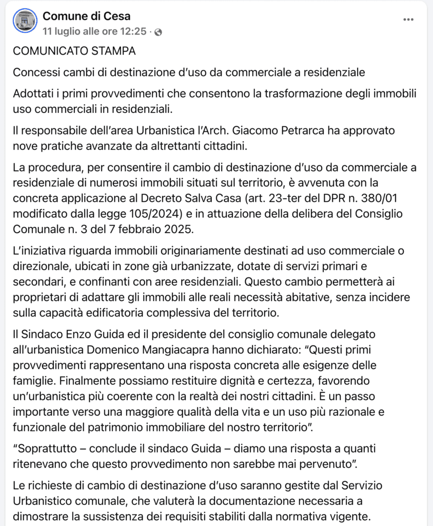 Dicevamo che i primi permessi per il mutamento urbanistico delle case-ufficio in immobili per civili abitazioni sono stati rilasciati l’11 luglio, quando i soliti noti, “politici rampanti, portaborse, ruffiani e mezze calze” per citare Guccini, erano ormai convinti di essersi sbarazzati definitivamente di Mario De Michele, il loro nemico numero uno, quello che rompeva le uova nel paniere. Le autorizzazioni sono state concesse, si legge nella nota ufficiale dell’amministrazione comunale, con “la concreta applicazione al Decreto Salva Casa (art. 23-ter del DPR n. 380/01 modificato dalla legge 105/2024) e in attuazione della delibera del Consiglio Comunale n. 3 del 7 febbraio 2025”. In quella assise la maggioranza compatta votò a favore della delibera di indirizzo, mentre la finta opposizione si astenne, di solito vota tutti i provvedimenti della coalizione di Guida. Sul piano normativo il via libera di Petrarca, almeno stando al comunicato stampa e in attesa che i permessi siano pubblicati sull’albo pretorio, è stato dato sulla scorta del Salva Casa di Salvini. Bene. Ma la domanda nasce spontanea: è una procedura corretta e legittima? Non serve un urbanista di fama mondiale per nutrire una vagonata di dubbi.
