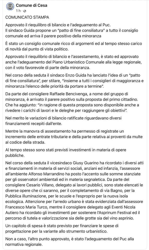 Per un pugno di deleghe e per proiettarsi alle amministrative del 2026 gestendo il potere la finta opposizione getta la maschera e si fa inglobare ufficialmente nella maggioranza griffata Enzo Guida. Da qui alle prossime elezioni il comune di Cesa sarà governato da una marmellata indistinta composta con gli ingredienti del più becero consociativismo. Per noi di Italia Notizie che lo andiamo dicendo e scrivendo da mesi non è una novità. Fin dal loro insediamento i consiglieri Raffaele Bencivenga, Ginotto De Angelis, Maria Rosaria Guarino e Maria Oliva, che “manu militari” presero il posto di Ernesto Ferrante, Carmine Alma, Amelia Bortone e Paola Verde, cacciati dal manovratore perché davano fastidio, sono sempre stati “allineati e coperti”, pur essendo stati eletti nella lista di minoranza Uniti per Cesa. Mai una critica a Guida e alla sua coalizione, mai una protesta contro alcuni provvedimenti palesemente illegittimi adottati dagli uffici, mai un accesso agli atti, nonostante i tanti punti neri di una gestione amministrativa poco o per nulla democratica.