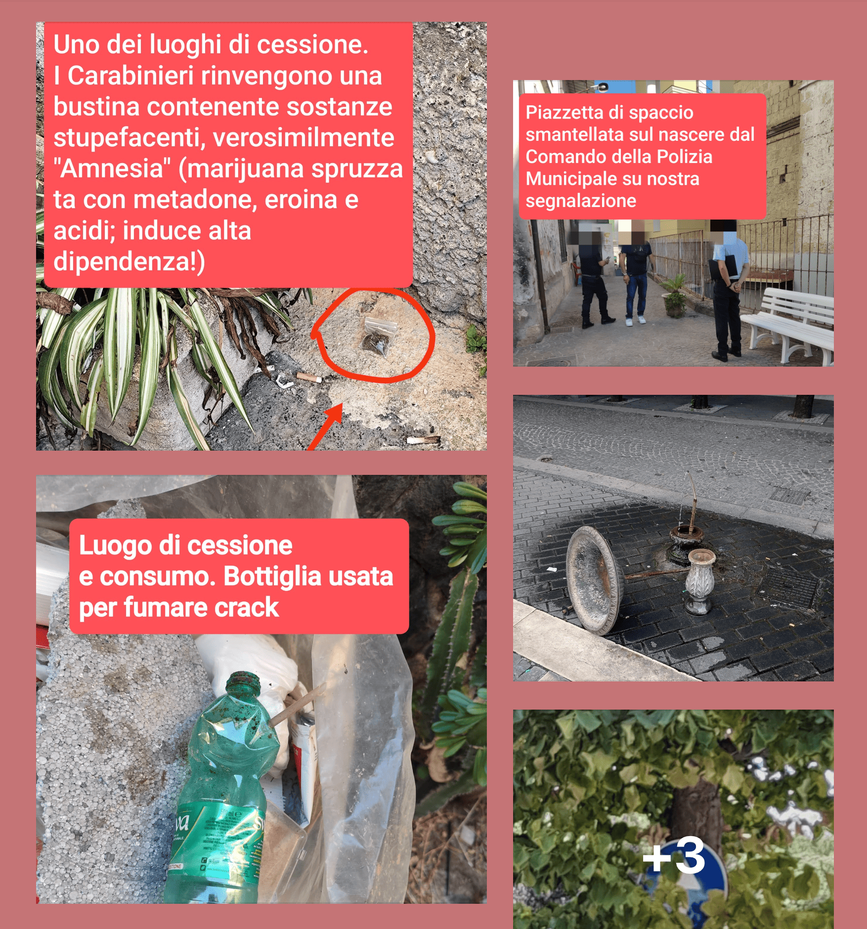 La definisce: “Un’allerta sociale di livello rosso”. Che va combattuta con “il contributo di tutti”, perché “la piaga della droga è una minaccia insidiosa che sta prendendo piede sul nostro territorio e che mina il nostro tessuto sociale, colpisce le famiglie e sta mettendo in serio pericolo la vita dei nostri ragazzi”. Serve dunque una mobilitazione generale, una marcia per la legalità fissata per il 30 settembre, in occasione dell’81esimo anniversario dell’eccidio dei Martiri Atellani. Con una lettera pubblicata su Fb, assieme ad alcune foto (in basso), Antonino Santillo si rivolge “con cuore aperto” a mamme e papa, giovani, educatori e concittadini. Il sindaco di Orta di Atella indirizza un accorato appello alla città dopo che il comune ha “attenzionato vari punti del territorio, anche grazie alle segnalazioni della popolazione”. Quello che è emerso è una situazione gravissima. In verità non nuova. “Ogni giorno – scrive Santillo – ci sono seminatori di morte che si organizzano per impossessarsi di angoli della nostra Orta: piazze, vicoli, circoli ricreativi di dubbia finalità, viavai sospetti in alcuni condomini; spazi che dovrebbero essere luoghi di vita e di socialità, si stanno trasformando in zone di degrado. Spesso, persino alla luce del giorno, assistiamo a scene di spaccio e consumo di droga, con i nostri adolescenti che si fermano in quei luoghi, attratti da una spirale pericolosa che potrebbe rovinarli per sempre”. Lo spaccio e l’uso di droga sta moltiplicando gli episodi di violenza e vandalismo. “Piazza Principessa di Belmonte, una delle nostre piazze più amate, – osserva la fascia tricolore – è spesso teatro di atti vandalici notturni. Fontane distrutte, segnali stradali trafugati, e in ultimo, l’episodio assurdo di qualche notte fa, quando balordi hanno gettato parti di mobilio dal balcone di un palazzo storico disabitato. E come non sentire un pugno nello stomaco leggendo della violenza subita da un nostro concittadino indiano, aggredito sulla Via Bugnano mentre andava al lavoro la mattina presto! Questa non è la nostra Orta, non è la comunità che vogliamo!”.