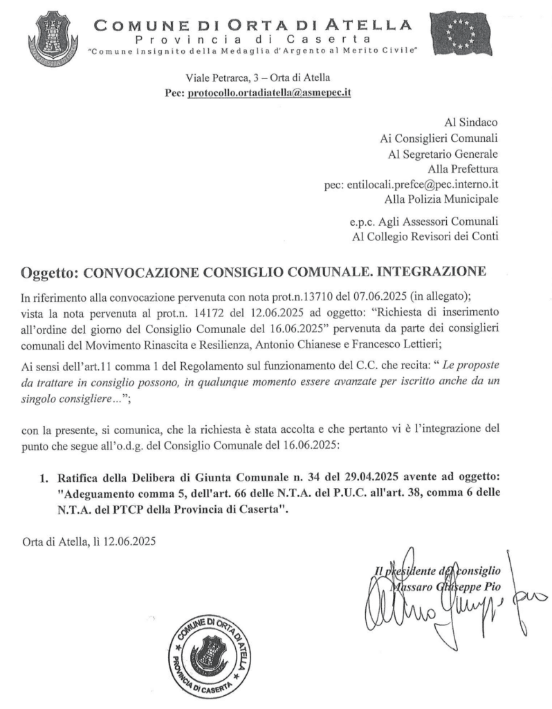 ODG CONSIGLIO CON I PUNTI CHIESTI DA SANTILLO
