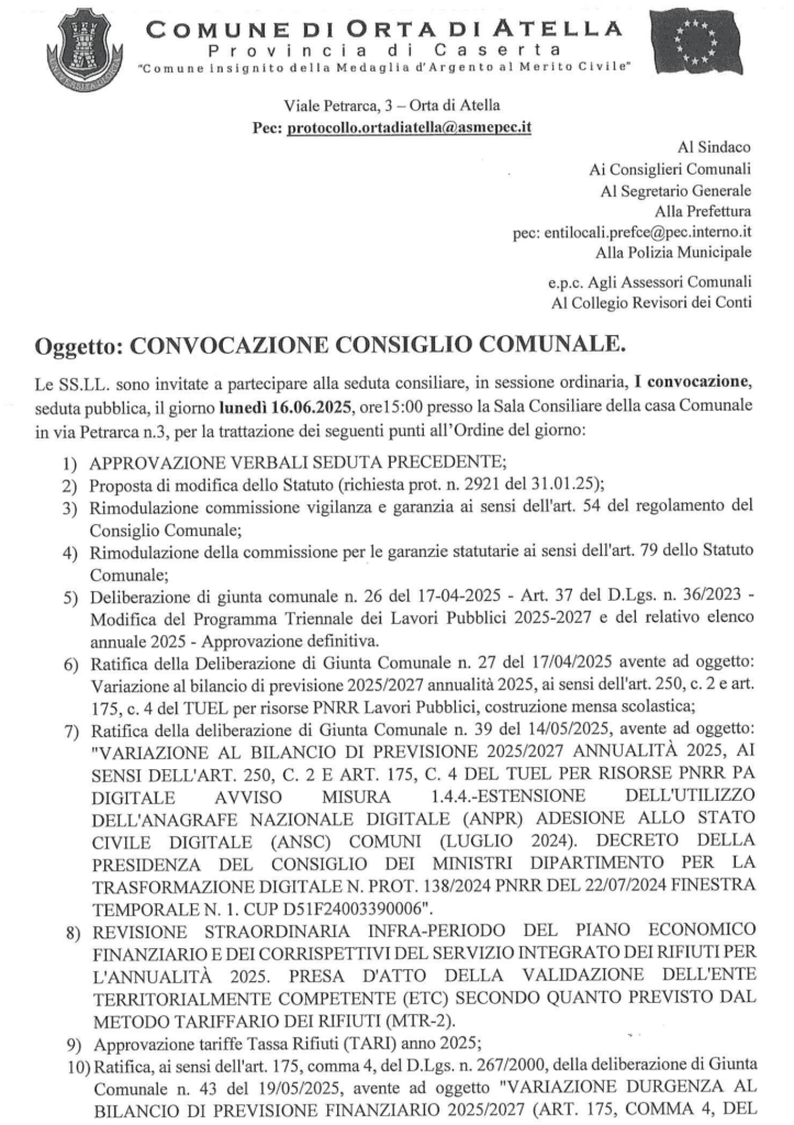 La storia si ripete. Com’era ampiamente prevedibile anche le dimissioni bis di Antonino Santillo sono una presa in giro. Già al momento di gettare la spugna per la seconda volta in due anni di amministrazione (record mondiale), il sindaco non aveva alcuna intenzione di mollare la poltrona. Giuseppe Massaro infatti ha indetto il consiglio comunale per lunedì prossimo, 16 giugno, alle 15.00 (foto in basso). All’ordine del giorno gli stessi punti contenuti nella convocazione della conferenza dei capigruppo che si è tenuta oggi. Le istituzioni ridotte a un tavolo da poker. Stavolta la partita tra Santillo e Massaro l’ha vinta il primo cittadino finto dimissionario. A suggerirgli le carte da giocare ovviamente il cugino Gianfranco Piccirillo. L’ultimo atto della seconda farsa in due anni sarà la sottoscrizione di un documento della maggioranza a sostegno di Santillo. Nel primo biennio dell’amministrazione ne sono stati firmati a decine: “Pieno sostegno al sindaco”. E poi puntualmente si apriva una nuova crisi nella coalizione. Dalla popolazione si alzerà una salva di fischi. Gli ortesi non ne possono più del trio Santillo-Piccirillo-Massaro. Ma il tris di due di picche non stacca la stina, nonostante il malato, ovvero la città, sia ormai agonizzante da lunghi mesi. Un accanimento terapeutico allarmante. Tutti si chiedono in continuazione perché non cedono il passo. Le frequenti rotture nella maggioranza non hanno nulla a che fa con la politica e con l’amministrazione. Prima o poi verranno a galla i veri motivi del contendere. E finalmente i reucci saranno nudi davanti al popolo.