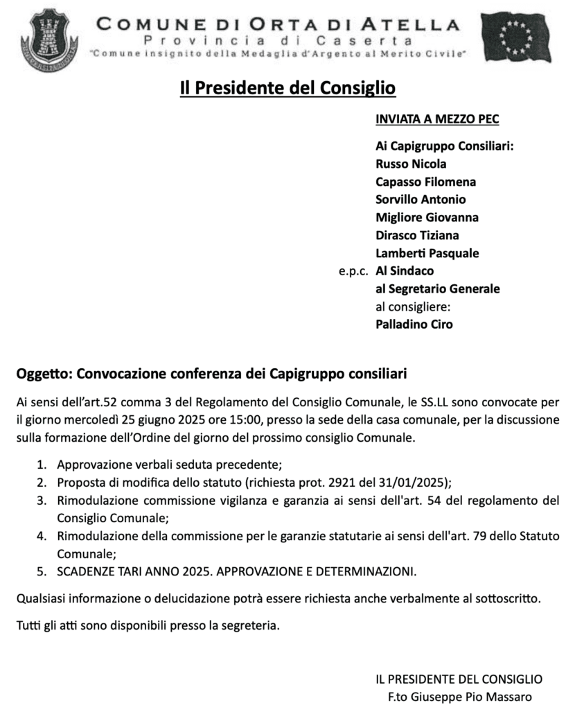 LA CONVOCAZIONE DELLA CONFERENZA DEI CAPIGRUPPO