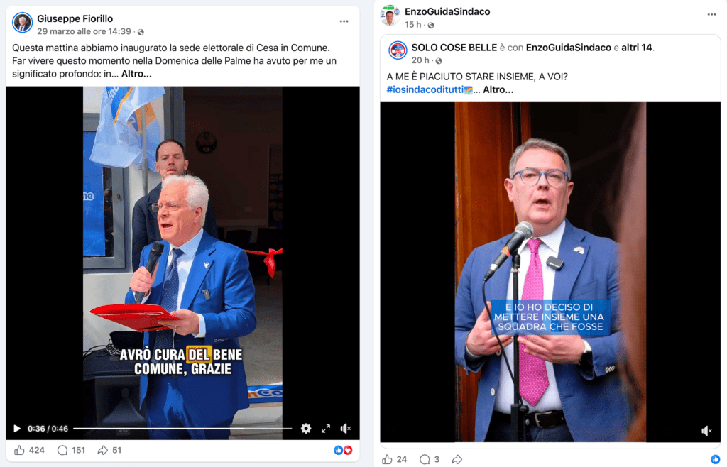 Se la prova del 9 del primo incontro elettorale con i cittadini è terminata in parità, non c’è partita sui social. Mentre i post di Fiorillo ottengono in media e nello stesso giorno di pubblicazione circa 500 “like”, quelli di Guida si fermano a poche decine (nelle foto). Un risultato per certi versi clamoroso. Da anni la fascia tricolore in carica fa un uso massiccio dei social, trasformati in una vetrina autocelebrativa per diffondere il Verbo delle “sole cose belle”. Una presenza virtuale quotidiana e invasiva. Eppure su Facebook Fiorillo, molto parsimonioso nelle uscite social, stravince distaccando di gran lunga il suo avversario. Il trend su Fb si è ampiamente spostato dal lato del leader di Cesa in Comune da quando lo stimato medico è ufficialmente sceso in campo.