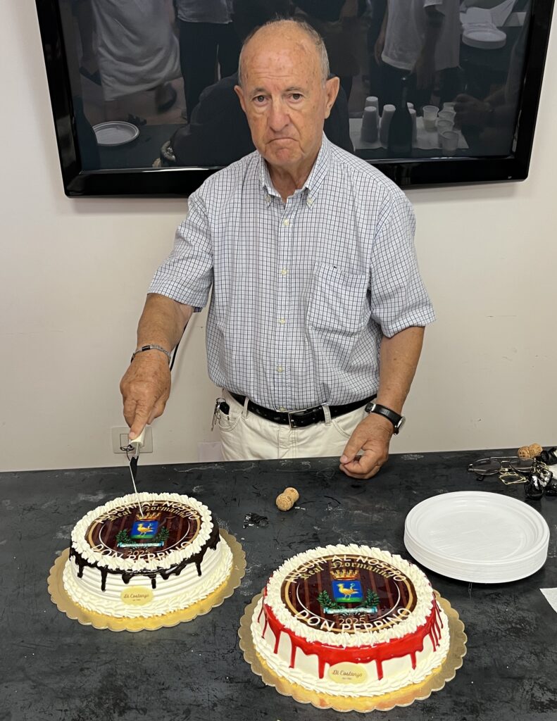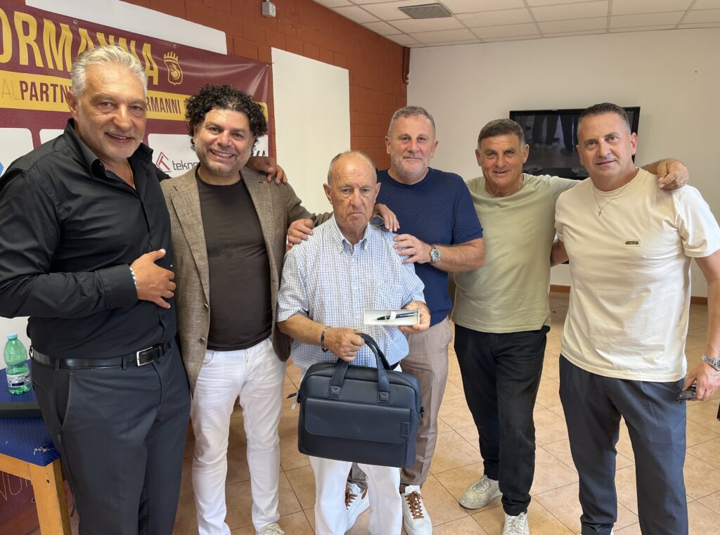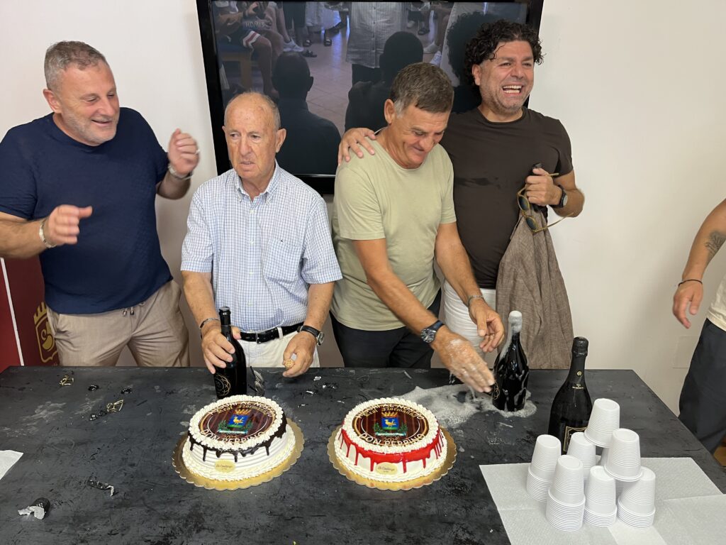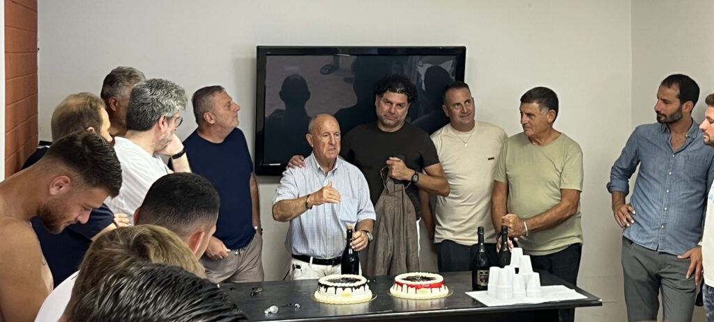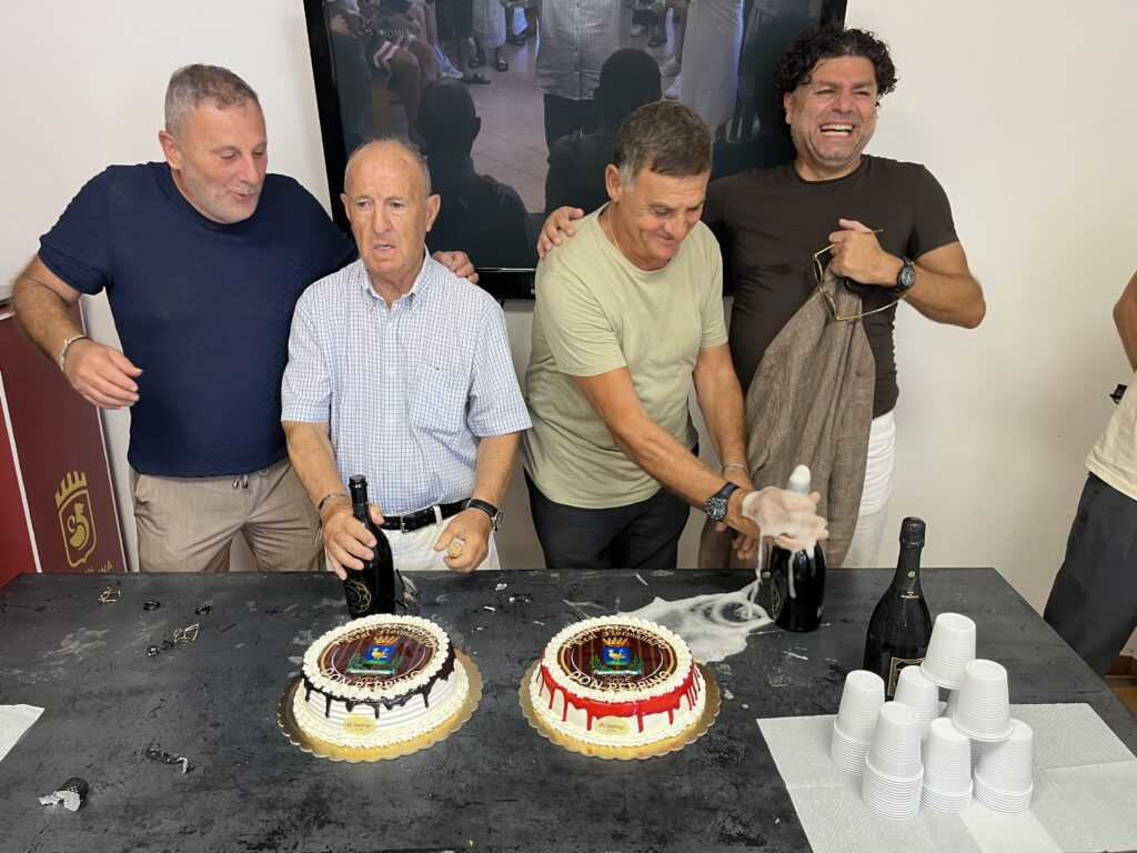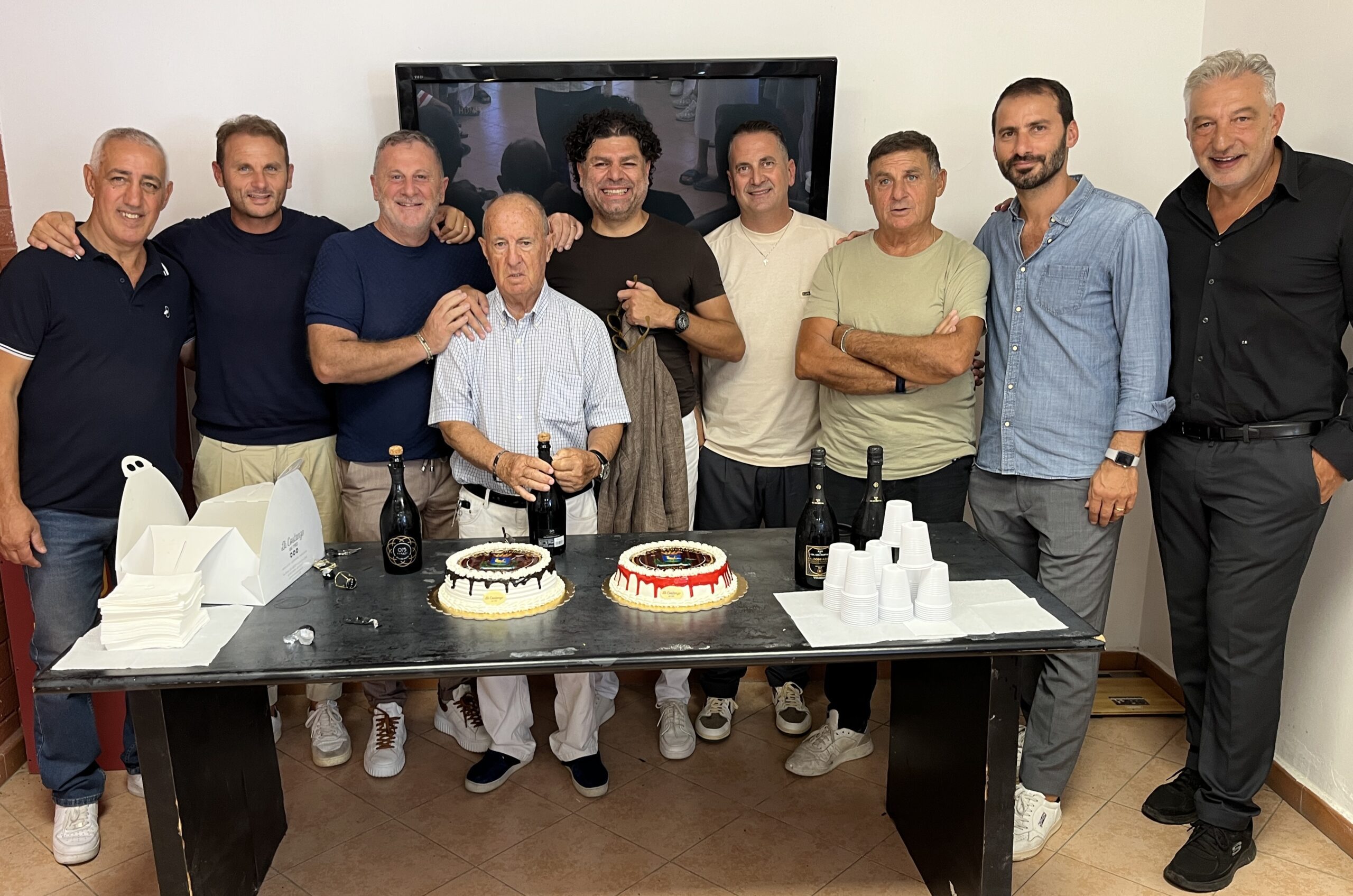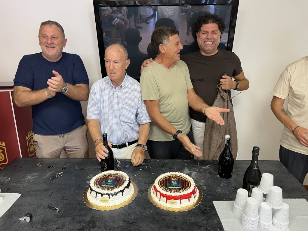 Presenti ai festeggiamenti il vicepresidente Enzo Cacace, il direttore sportivo Dario Bova e la new entry Claudio Buono, persona seria e competente, che con la sua lunga esperienza sicuramente ricoprirà in modo egregio il delicato ruolo di direttore generale. All’iniziativa hanno partecipato i dirigenti Luigi Del Villano, Renato e Marco Ciardulli e Luciano Lisbona, responsabile della Juniores granata e presidente dell’Accademia Real Agro Aversa. Straordinario l’affetto dei calciatori nei confronti di don Peppino De Michele, considerato da tutti un “faro” per la sua carriera ricca di successi iniziata più di 60 fa. Un bellissimo momento che dimostra come la Real Normanna sia una famiglia dentro e fuori dal campo. Un ottimo viatico per ben figurare anche in Serie D dopo la vittoria del campionato di Eccellenza.