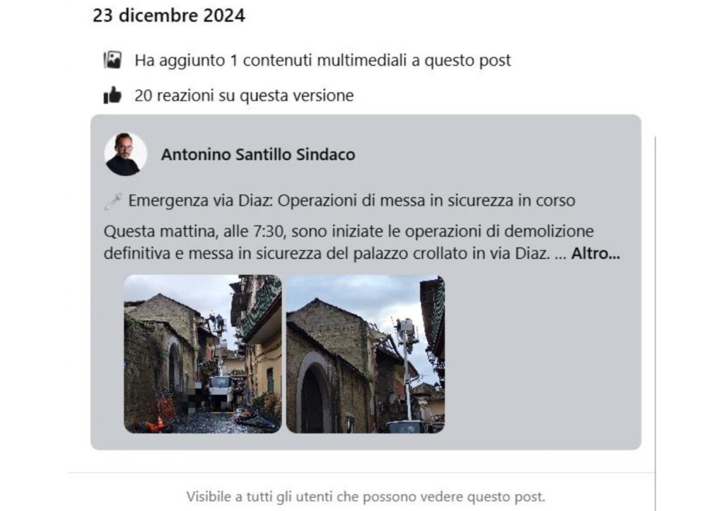 Nel merito della rettifica facciamo presente ai nostri lettori che il sindaco non smentisce il contenuto dei nostri articoli. Tutt’altro. Santillo ha confermato la “sostanza” di quello che abbiamo riportato. Noi stessi abbiamo rimarcato che l’oscuramento del logo della Opus Art potrebbe essere riconducibile ai titolari della ditta, consapevoli di non poter svolgere lavori pubblici di nessun tipo, incluso il noleggio dei mezzi, in quanto la società è stata raggiunta da interdittiva antimafia. Al netto dell’aspetto fotografico che è stato utile per avvalorare la nostra tesi, il nocciolo del problema è proprio questo. Risulta a Santillo e all’ente locale che una ditta interdetta per possibili legami con la camorra abbia noleggiato i propri mezzi per i lavori in via Diaz affidata alla neonata società Costruendo? Risulta a Santillo e all’ente locale che la ditta Costruendo è stata attivata appena due mesi prima del conferimento dell’appalto diretto da 52mila euro? Risulta a Santillo e all’ente locale che il Codice per gli appalti pubblici e l’Autorità nazionale anticorruzione stabiliscono e impongono il requisito delle “pregresse esperienze lavorative” in caso di affidamenti diretti? Risulta a Santillo e all’ente locale che il funzionario è tenuto ad accertare la reale sussistenza delle “pregresse esperienze lavorative”, come ha sancito la Suprema Corte di Cassazione con la sentenza n. 2153 del 17 gennaio 2025? Risulta a Santillo e alla giunta che, in base al Testo unico degli enti locali, il sindaco e gli assessori sopraintendono all’operato dei funzionari nel rispetto della separazione delle funzioni? E infine Santillo ha avviato un’indagine interna per appurare eventuali illegittimità riguardanti l’appalto assegnato alla Costruendo e la presenza illegale della Opus Art sul cantiere di via Diaz?
