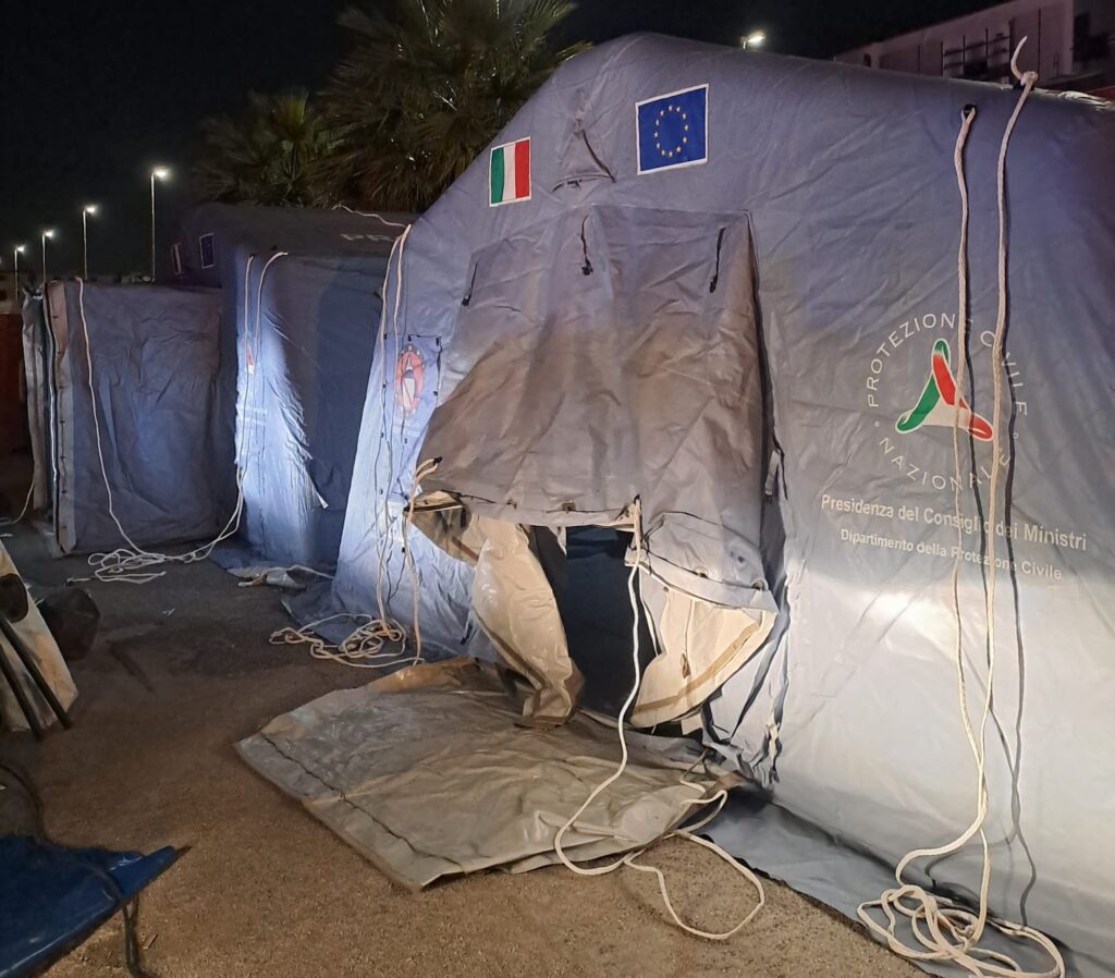 Domenica scorsa si era aperta una mega voragine nell’area sottostante con il crollo di una parte della facciata di un immobile in via Migliaccio, nella giornata di ieri l’intera abitazione ha ceduto come un castello di carta (video e foto in basso). Per fortuna, dopo i primi segni di cedimento, sono prontamente intervenuti l’ufficio tecnico comunale, la polizia municipale e i vigili del fuoco. La zona fu delimitata e la casa, in cui abitavano due giovani, fu subito sgomberata, altrimenti saremmo qui a raccontare una tragedia. Fu disposto lo sgombero di altre 7 persone. Con il crollo dell’intero stabile è salito a 21 il numero degli sgomberati, dodici di loro hanno trovato riparo dai familiari, gli altri nove sono stati accolti in una tendostruttura montata ieri sera dalla Protezione civile nell’area mercato (nelle foto). I carabinieri hanno perlustrato le strade per garantirne la sicurezza e per verificare che tutto andasse per il verso giusto. Stamattina c’è stata la protesta degli operatori del mercato perché il comune per domani ha sospesa l’attività.
